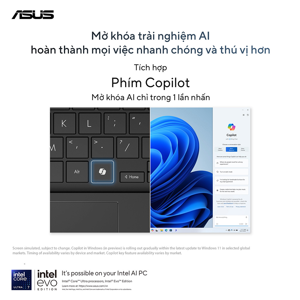 Laptop ASUS Vivobook S 14 OLED S5406SA-PP059WS (Intel Core Ultra 7 258V | 32GB | 1TB | Intel Arc | 14 inch 3K OLED | Win 11 | Office | Xanh)