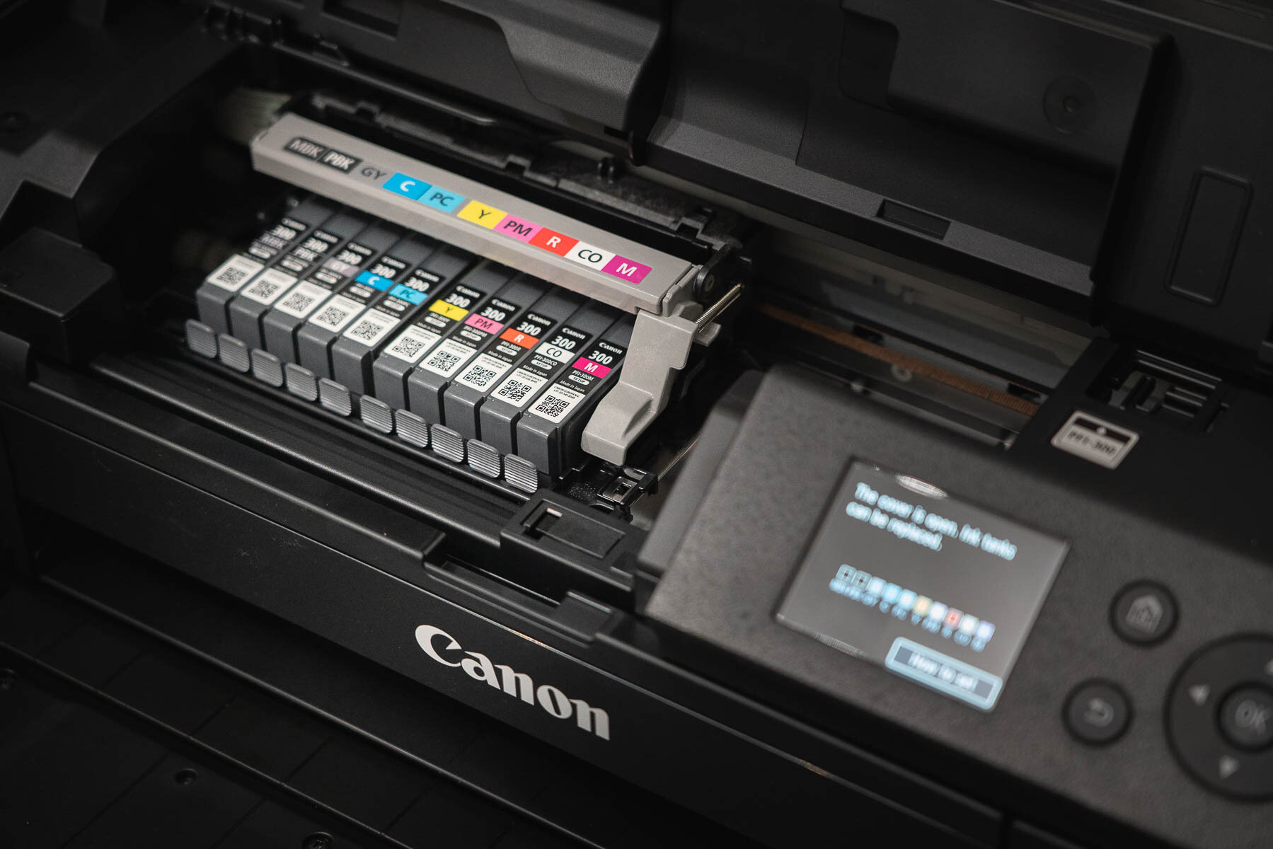 | Cartridge mực | PFI-300 (Cyan / Magenta / Yellow / Red / Photo Cyan / Photo Magenta / Grey / Photo Black / Matte Black / Chroma Optimizer) |